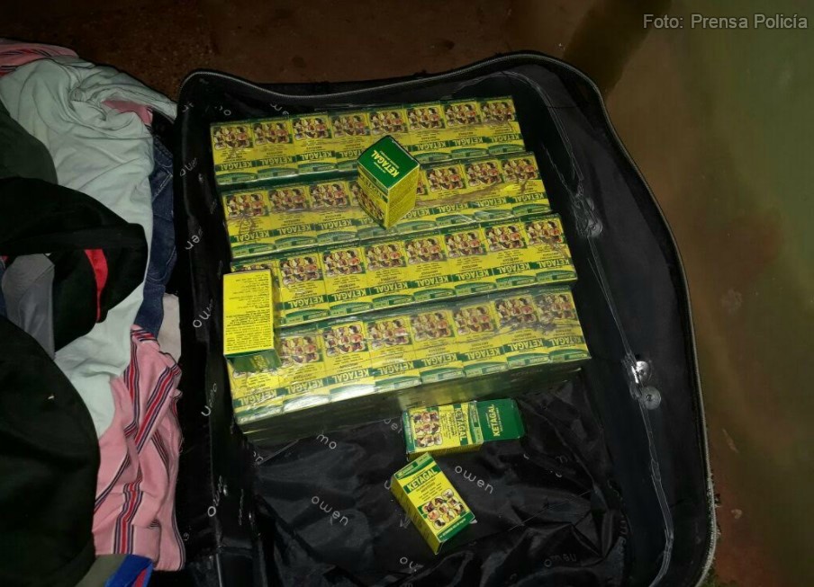 En el marco de los habituales operativos contra el Narcotráfico dispuesto por el Ministerio de Gobierno, en la localidad de Jardín América la Policía de Misiones incautó por primera vez una droga llamada Ketamina, la cual a su vez puede ser sintetizada y comercializada como “Keta” (entre otros términos vulgares en boliches).El procedimiento se concretó pasada la medianoche en la Terminal de Ómnibus del mencionado municipio donde un hombre al verse rodeado por la presencia policial abandonó en el baño una valija en cuyo interior había 196 frascos de Ketamina con 9.800 dosis, según lo corroboró la Dirección de Toxicomanía.Esta droga, producida en Paraguay, no tiene un perfil definido en cuanto a su uso ya que es utilizado como componente para fármacos en animales, aunque en la Argentina su notoriedad cobró fuerzas en las distintas provincias por su uso como droga alucinógena.Como suele ocurrir en la mayoría de los procedimientos registrados hasta el momento por parte de las fuerzas federales, la sustancia es traficada de manera disimulada en bolsos y encomiendas.En el caso de esta madrugada el aforo de la Ketamina incautada por la Policía de Misiones en la terminal de Jardín América, es de 3.800.000 pesos. Se dio intervención al Juzgado Federal de Oberá.<p lang="es" dir="ltr"><a href="https://twitter.com/hashtag/NARCOTR%C3%81FICO?src=hash">#NARCOTRÁFICO</a>Incautaron ketamina en la Terminal de Jardín<a href="https://t.co/hDp0LzofNj">https://t.co/hDp0LzofNj</a> <a href="https://t.co/ShqIc3uEeD">pic.twitter.com/ShqIc3uEeD</a></p>— Primera Edición (@primeraedicionw) <a href="https://twitter.com/primeraedicionw/status/908666961676177413">September 15, 2017</a>