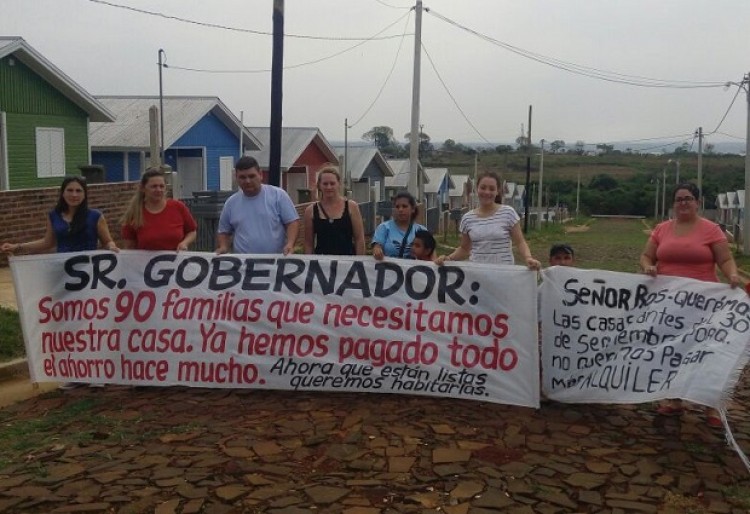Vecinos de Garupá se reunieron para reclamar la entrega de las viviendas pertenecientes al barrio 90 Viviendas. Sostienen que son adjudicatarios del Iprodha desde hace casi cuatro años, que las casas “están listas hace un año y deteriorándose” y exigen que les entreguen las llaves para poder mudarse a sus nuevos hogares. Desde el Iprodha aducen que restan algunos trabajos de conexiones, entre ellos eléctricos.María es una de las vecinas adjudicataria de este barrio de viviendas de madera y comentó a PRIMERA EDICIÓN que “en el año 2013 ya salimos sorteados, pagamos el ahorro previo, que son las 15 cuotas que terminamos de abonar a fines del 2014. Desde entonces este barrio estuvo parado mucho tiempo porque cambió de empresa constructora por temas de dinero. Ahora ya hace un año que está listo para entregar, incluso en febrero pasado ya nos iban a dar pero dijeron que faltaba solucionar unos problemas de electricidad, entonces pasaron a marzo, luego a julio y así, acá seguimos esperando, casi llegando a fin de año”. Luego de la protesta en las calles de su barrio, las 90 familias esperan obtener algún tipo de respuesta, porque “la verdad es que estamos desesperados por nuestras casas. A nosotros nos toca viviendas de madera que necesitan mantenimiento, las casas están cerradas, se está poniendo fea la pintura, hay detalles que deben cuidarse. Aparte de la urgencia de aquellos que estamos pagando alquiler algunos vivimos de prestado o con nuestros padres, mucho somos de Posadas y otros de Garupá”, indicó María.Hasta cambio de escuelaOtros de los problemas que les toca vivir a diario a varias de las 90 familias es que “los que somos de Posadas habíamos inscripto a nuestros hijos acá en la escuela de la zona para este año porque nos dijeron que supuestamente nos entregaban la casa a más tardar en marzo. Así que los tenemos que traer desde allá hasta acá, es un desastre, porque al sacarlos de la escuela en la cual iban después se quedaron sin banco”, indicó Roberto, otro de los que reclama la entrega de su vivienda.Más adelante, Roberto detalló que “las casas están todas listas, con los medidores del agua, faltaría que venga Samsa y los active. El transformador está, la línea de electricidad también, acá creemos que están esperando a octubre para el cierre de campaña”. De no obtener una pronta solución los vecinos planean continuar las medidas de fuerzas. “Estuvimos protestando acá en el barrio, hace 10 días, también fuimos al Iprodha y ahí nos dijeron que todavía seguían trabajando en el barrio. Pero eso no es así porque nosotros nos fijamos varias veces y no hay ni un obrero porque no falta hacer nada. Nos molesta que todo está impecable en las casas pero sin que nos entreguen y eso se va deteriorando con el sol y la lluvia. No hay nadie más que los serenos, el lunes queremos ir nuevamente al Iprodha a cortar la calle porque exigimos una respuesta y que nos entreguen ya”, indicó María. Voz oficialFuncionarios del Instituto Provincial de Desarrollo Habitacional (IPRODHA) fueron consultados por este Diario sobre el pedido realizado por estas numerosas familias a lo que respondieron que “no hubo ningún reclamo por escrito, no existe una sola nota presentada”. Por otra parte indicaron que “esas viviendas no se entregaron aún porque se están solucionando unos desperfectos en los nexos, para que a futuro los adjudicatarios no tengan inconvenientes, por ejemplo, eléctricos”. En cuanto al tiempo estimado para resolverse esos inconvenientes y proceder a la entrega de esas casas aclararon que “esas viviendas se entregarán antes de fin de año”.