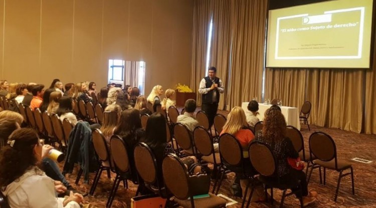 Con el propósito de sensibilizar y movilizar a los distintos actores sociales respecto a la importancia de concebir a las niñas, niños y adolescentes como sujetos de derechos, desde la Defensoría se brindan espacios de capacitación y formación sobre los principales aspectos que contempla el nuevo paradigma de protección integral de niñez y adolescencia. En este marco, más de 150 docentes de Iguazú participaron del taller de Introducción a los Derechos de Niños, Niñas y Adolescentes que impulsa la Defensoría de los Derechos de NNyA.“Se pretende brindar una serie de herramientas para un abordaje de trabajo desde una perspectiva de derechos desde las escuelas”, explicó el Defensor de los Derechos de Niños, Niñas y Adolescentes, Mgter. Miguel Molina, quien estuvo a cargo de la capacitación junto al equipo técnico.Cabe destacar que las instancias de formación están destinadas a docentes, promotores y profesionales de la salud, referentes de fuerzas de seguridad, trabajadores sociales, periodistas, medios de comunicación y todos aquellos miembros de organizaciones que trabajen o tengan alguna vinculación con niños, niñas y adolescentes. “Este año continuamos trabajando en conjunto con el área de Recursos Humanos del Hotel, hicimos talleres Promotores de Derecho en el ámbito turístico, donde participaron adolescentes de distintos colegios e hijos del personal del Hotel, analizaron, opinaron y propusieron un Turismo desde la mirada de los Niños. Fue una experiencia nueva y en este sentido agradecemos el compromiso de la empresa que siempre apoya estas acciones de promoción”, remarcó Miguel Molina.