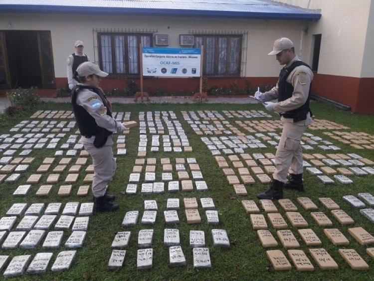 Cerca de media tonelada de marihuana fue incautada el lunes por la noche cuando narcotraficantes intentaban ingresarla desde Paraguay al país en la frontera misionera, informaron fuentes policiales.El secuestro se realizó en la zona "caliente" de Puerto Maní, en inmediaciones de Corpus, durante un operativo montado por la Prefectura Naval, cuyos investigadores habían determinado que una organización de narcotráfico iba a realizar una maniobra para traficar dicha sustancia desde Paraguay.Según indicaron los voceros, los efectivos de la fuerza se dispusieron en un lugar cercano y, mediante la utilización de visores nocturnos, detectaron la presencia de un bote a remos que se desplazaba a la altura del kilómetro 1.653 del río Paraná.De forma inmediata, los prefectos se movilizaron hasta la costa donde hallaron la embarcación sin tripulantes y con 28 bolsas dispersas.Durante la requisa, constataron que el bote estaba cargado con 559 paquetes rectangulares tipo ladrillo que contenían marihuana, por un peso total de 498,400 kilos.La sustancia fue decomisada por orden del Juzgado Federal de Oberá, a cargo de José Luis Casals, quien instruyó a la PNA para profundizar la investigación e intentar dar con los responsables del tráfico.