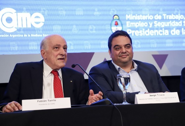 El presidente de la Confederación Argentina de la Mediana Empresa (CAME), Fabián Tarrío, solicitó este miércoles al ministro de Trabajo, Jorge Triaca, “la reducción de los aportes patronales", una medida que el sector considera clave para ganar competitividad, especialmente en el caso de las pymes industriales.El pedido se concretó esta mañana en la sede de la CAME, adonde el ministro Jorge Triaca acudió para presentar programas de beneficios para empresas con el objeto de mejorar la competitividad y generar trabajo de calidad.El presidente de la entidad, Fabián Tarrío, solicitó “la reducción de los aportes patronales, que representaría una de las medidas claves, debido a que son el segundo componente de los costos de las pymes industriales".Ante 200 empresarios pymes, el ministro Jorge Triaca resaltó la importancia de la capacitación generada a partir del vínculo laboral con el empresarial. También planteó que uno de los grandes problemas del mercado laboral es la informalidad, a partir de la cual se genera competencia desleal entre quienes pagan impuestos y quienes no lo hacen. “Es necesario evitar la mafia de los juicios laborales que ponen piedras en el camino de las empresas. Hacerlo no significa estar en contra de los trabajadores sino darles certezas”, dijo Triaca.Tarrío se refirió a los costos gravosos que enfrentan las empresas y citó, como ejemplo, que el empleador debe realizar a la AFIP un pago de $ 33 aproximadamente por cada $ 100 de sueldo bruto que recibe el trabajador. “Una disminución de los aportes patronales no repercute en el salario del empleado ni le quita beneficios, sino que se trata de cargas que el empleador debe asumir ante el Estado”, explicó el presidente de CAME.Tarrío refirió que los convenios colectivos que establecen los sueldos del personal de todo el país se definen a nivel central, teniendo en cuenta el costo de vida y la mano de obra disponible en las provincias del centro y "esto lleva a aplicar en distritos menos desarrolladas salarios de provincias centrales".CAME planteó que esto desalienta el empleo formal sobre todo en el interior ya que regularizar a los empleados implica abonar salarios que no se condicen con las posibilidades reales de las pymes provinciales, sobre todo cuando los sueldos de los trabajadores se fueron incrementando considerablemente en los últimos años e incidieron en los costos de producción."A modo de ejemplo, una Pyme sureña tiene un sobrecosto laboral de mínimo un 20% más que las del respecto del país, ya que abonan un plus en los convenios por zona patagónica", reseñó el planteo de CAME.Fuente: Télam
