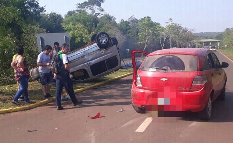 Alrededor de las 9:25, efectivos de la Unidad Regional?V fueron comisionados hasta el?Parque Nacional Iguazú, donde constataron una colisión entre un Chevrolet Agile y un utilitario?Peugeot Partner, que terminó en posición invertida.Mediante la recolección de datos, las autoridades pudieron establecer que en el automóvil viajaba una pareja y dos adolescentes oriundos de Miramar, en Buenos Aires, mientras que el conductor del utilitario era un hombre de 43 años, vecino del barrio Belén de Iguazú.Los policías pudieron constatar que el único herido fue la víctima misionera, quien terminó con lesiones leves. Efectivos de Criminalística trabajaron en el lugar de los hechos.
