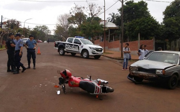 Choque entre moto y auto en Jardín América