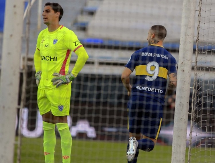 Boca ratificó este sábado su liderazgo en la Superliga argentina al imponerse por 4 a 0 sobre Vélez, en el partido disputado en Liniers correspondiente a la cuarta fecha del certamen.El delantero Darío Benedetto, a los 14 minutos con asistencia de Frank Fabbra tras una gran habilitación de Pavón, marcó el gol que dio la ventaja inicial y la tranquilidad al elenco boquense, que a partir de ahí jugó "a placer" contra un equipo local que llegaba como uno de los animadores del torneo, con dos triunfos y un empate hasta que apareció el "Xeneize".Nada más iniciarse el complemento, a los 6 minutos, los de Guillermo Barros Schelotto ampliaron diferencias con la misma fórmula que para el 1-0, pero desde el otro costado: una buena salida rápida desde el centro del campo para que corra Pavón, centro de éste y toque de espuela de Benedetto a la red tras un frustrado despeje de la defensa de Velez.Luego, a los 18 de esa segunda etapa, Benedetto jugó esta vez por afuera y su habilitación para Cardona fue interceptada por Nicolás Domínguez, con tan mala fortuna que la pelota se coló en su propio arco.El colombiano Fabbra redondeó la goleada a falta de cinco minutos para el final, tras un robo de balón en tres cuartos de cancha.Con este resultado, Boca alcanza los 12 puntos (sobre 12 posibles) y espera un tropiezo de River este domingo, cuando reciba a Argentinos Juniors, para quedarse solo en la cima del campeonato.