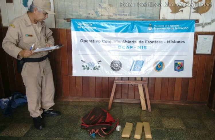 Efectivos de la Prefectura detectaron una lancha con una persona a bordo que, ante la presencia de los gendarmes, se dio a la fuga abandonando el vehículo y sus pertenencias. Inmediatamente, el personal de la fuerza requisó el bote, proveniente de Paraguay, y halló 2,890 kilogramos de marihuana y 110 gramos de cocaína lista para ser comercializada en la mochila del delincuente. Los funcionarios de la PNA continúan trabajando en la zona para dar con el implicado y más elementos que aporten a la investigación. Intervino el Juzgado Federal de Eldorado, a cargo del Dr. Miguel Ángel Guerrero, que ordenó el secuestro de los estupefacientes.