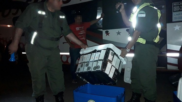 Efectivos del Escuadrón 4 "Concordia" de la Gendarmería Nacional secuestraron este lunes 80 teléfonos celulares que eran llevados ocultos en una conservadora a bordo de un ómnibus de larga distancia, en infracción a la Ley 22.415 o "Código Aduanero". El procedimiento tuvo lugar en la ciudad entrerriana que da nombre al escuadrón de GN, cuando efectivos de la fuerza realizaban un control en la intersección de las rutas nacionales 14 y 18.Allí interceptaron un ómnibus que circulaba desde Puerto Iguazú hacia la provincia de Buenos Aires y, al realizar la inspección, hallaron en su interior una conservadora que, para ellos, tenía un peso excesivo. Entonces, frente a testigos, la abrieron y se encontraron con 80 teléfonos celulares adheridos a la parte interna con cinta de embalar. El Juzgado Federal de Concepción del Uruguay ordenó el secuestro de la mercadería, pero no se pudo individualizar a quién pertenecía el contrabando.
