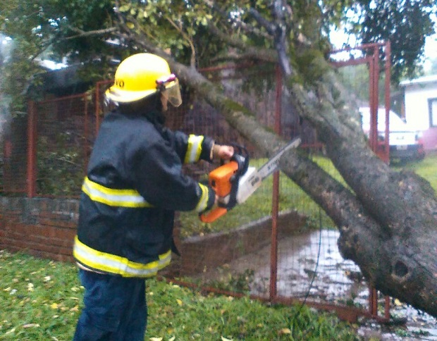 Desde la Policía reportaron cuatro casas afectadas por el temporal en Santa Ana, todas ellas por voladuras de techos.Las viviendas son de material y con chapas de zinc, dos de ellas en el barrio San Pantaleón -cerca de ruta nacional 12- y las otras dos en la zona céntrica de la localidad. En principio, no hubo necesidad de evacuar a sus inquilinos.El reporte policial emitido desde la Unidad Regional II sobre los efectos de la tormenta en la Zona Centro es el siguiente: Oberá: Voladura del techo de la Brigada Investigaciones (sin lesionados) y caída de un árbol sobre un muro, que demandó la actuación de bomberos.Panambí: cuatro voladuras parciales de techo en la zona céntrica y el barrio 10 Viviendas, sin lesionados.Mártires: voladura parcial de tres chapas de cartón en una vivienda precaria del Lote 47Colonia Guaraní: sin suministro de energía eléctrica.Colonia Alberdi: daños en el tendido eléctrico (rotura de postes)Campo Ramón: postes caídos y cables cortados.Campo Viera, Colonia Alberdi y Panambí: sin electricidad.San Javier Según informaron desde la Unidad Regional VI, se registró la voladura de techo de una vivienda en inmediaciones del Círculo de Suboficiales, en la entrada al camping Árbol, además de la caída de un postre de luz en la avenida 25 de Mayo frente a la YPF y otro sobre la ruta provincial 4 frente al barrio Niño Jesús.AlemEn la calle Los Pioneros se registró la voladura de techos de una casa y dos postes de telefonía cayeron sobre la calle Tiburcio Ayala, según informaron desde la Unidad Regional VI.Puerto Rico y MontecarloAbundante lluvia acompañada de granizo y fuertes vientos azotaron también el departamento Libertador General San Martín a partir de la media tarde de este domingo, causando la caída de numerosos árboles sobre el tendido eléctrico y la consiguiente interrupción del servicio, que también afectó a Garuhapé.Un vecino llamado Christian apuntó que "de Garuhapé a Puerto Rico vi hace un rato al menos siete postes de electricidad caídos junto a la ruta y un cable que la atravesaba. En Garuhapé voló el techo de un tinglado y cuando llegué a casa vi tres árboles caídos, y uno arrancó el cable de la luz".En Montecarlo, las precipitaciones se hicieron sentir como en el resto de la provincia y en el transcurso de la tarde se registraron tres cortes en el suministro eléctrico de entre 15 y 20 minutos cada uno, que fueron rápidamente resueltos.A oscurasSegún Emsa, a la tarde-noche de este domingo se encuentran sin servicio eléctrico 25 de Mayo, San Javier, Concepción de la Sierra, Santa Ana, Jardín América, El Soberbio, 2 de Mayo, Apóstoles, San José, Candelaria, Iguazú, el Parque Nacional Iguazú y el Aeropuerto Internacional Iguazú, este último con generación propia.