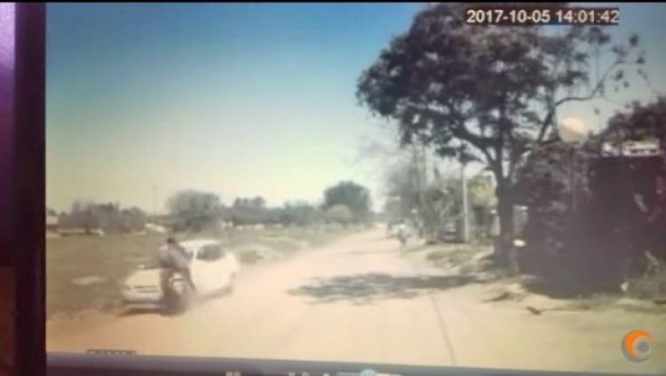 El siniestro sucedió en la ciudad cordobesa de Jesús María. El pequeño, de 2 años, milagrosamente sufrió sólo una fractura en una pierna. Su madre, en tanto, resultó ilesa. El siniestro, que quedó registrado en un video, sucedió cerca de las 14 de este jueves en la intersección de las calles Parque Los Glaciares y Sierras de Macha, en barrio Sierras y Parque. El bebé, por fortuna, sólo sufrió fractura de una pierna, en tanto que su madre resultó con algunos traumatismos. El niño fue trasladado hacia el Hospital Vicente Agüero. Fuente: Cadena3