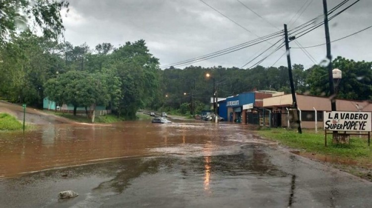 Fue tan abundante la cantidad de agua caída durante la mañana de este martes en Puerto Piray que la avenida Marcos Paz quedó totalmente tapada. Un vehículo intentó trasponerla y quedó varado y con más de la mitad del auto cubierto por el agua. Además, el arroyo San Juan desbordó y dejó sin clases al turno tarde del Colegio Nuestra Señora de los Milagros, debido al avance de las aguas sobre la vía que comunica a dicho establecimiento educativo con el resto de la ciudad.Eldorado también sintió el rigor del aguacero de este martes, ya que distintas calles y avenidas de la ciudad quedaron prácticamente tapadas por el agua, como el caso del Kilómetro 2.