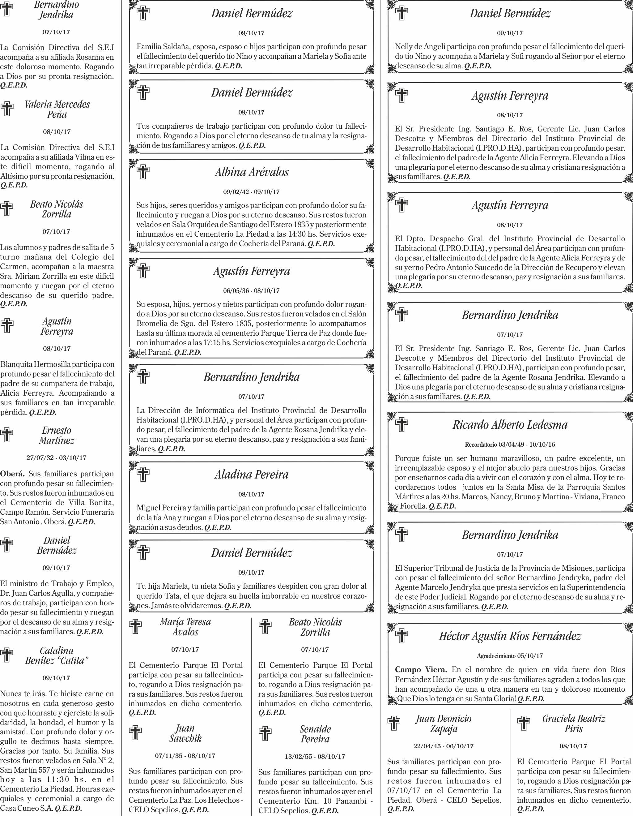 Fúnebres del martes 10 de octubre de 2017