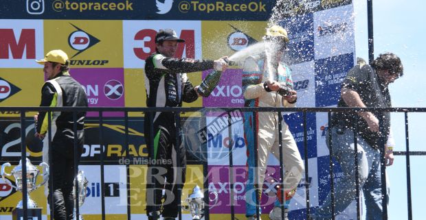 El piloto Agustín Canapino a bordo de un Mercedes Benz logró este domingo ganar la carrera del Top Race que se llevó a cabo en el autódromo de Oberá, válida por la décima fecha del campeonato de la categoría.El arrecifeño subió al primer lugar del podio mientras que la segunda ubicación fue para Mariano Altuna -con Chevrolet- y la tercera posición se la adjudicó Diego Azar -con Mercedes Benz-.Canapino arrancó liderando la carrera desde el inicio mientras que Altuna y Azar pelearon por el segundo lugar en todo el recorrido, lo que le permitió al líder sacar una diferencia y afirmarse en la punta.En tanto, Franco Girolami a bordo de un Mitsubishi también hizo una buena largada, pero recibió una sanción, tuvo que hacer un paso por boxes y cuando salió de allí se rozó con su compañero de equipo Matías Rodríguez.En la punta de la carrera Canapino perdió rendimiento y comenzó a sufrir la presión de Altuna, quien se intentó arrebatar el liderazgo hasta que ingresó el auto de seguridad.La entrada del mencionado auto fue por el despiste de Luis José Di Palma con Mercedes, luego de un incidente con el coche de Matías Rossi.La competencia se volvió intensa en el reinicio con el piloto de Arrecifes, campeón de la categoría, que demostró solidez en el primer puesto para asegurarse su victoria número 41° en la categoría. .El segundo lugar en la carrera fue finalmente para Altuna, seguido de Azar mientras que completaron las cinco primeras posiciones Ricardo Risatti y Gustavo Tadei.Rossi, de punta a puntaLa segunda competencia del Top Race quedó para Matías Rossi, que largó en la primera posición gracias al sistema de competencia que propone la categoría invirtiendo la grilla de los ocho primeros de la clasificación.Mientras Rossi aguantó adelante, en las posiciones de escoltas se observó una pelea atrapante entre Diego?Azar, Franco Girolami, Gustavo Tadei y Mariano Altuna.Fotos: J.C. Marchak