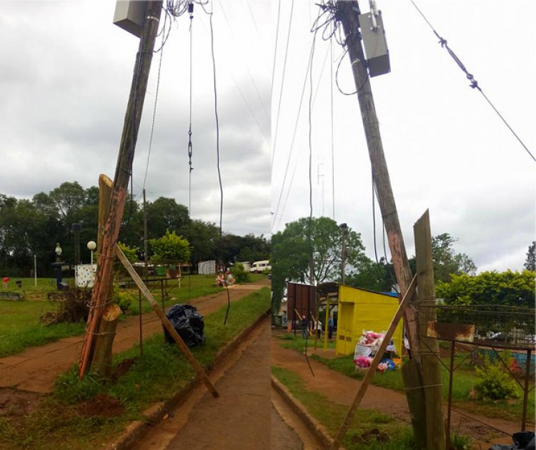 Luego de las tormentas, el estado de los postes en Puerto Iguazú ha pasado a ser la “segunda atracción turística” en la ciudad de las cataratas. Las fotografías invaden la web con denuncias de vecinos mostrando el estado peligroso de los postes del servicio eléctrico. La falta de inversiones y de trabajo efectivo en los desperfectos producidos por los intensos vientos y lluvias preocupa a los ciudadanos por el estado amenazante en el que se encuentran las calles, con postes inclinados y atados con alambres.“No nos queda otra que subir a las redes sociales. Nadie nos escucha cuando llamamos a reclamar. Nadie se hace cargo. Nadie viene a trabajar como se debe. Y la verdad es que creo que no es culpa de los trabajadores, sino de los jefes que se roban el dinero. Los trabajadores no tienen las herramientas”, protestó Mirta Graciela Gómez ante PRIMERA EDICIÓN.“Iguazú es un desastre. Pero no solo en el servicio de luz, sino en todas las obras que hacen. No hay agua, hicieron un arreglo de empedrado hace poco frente a mi casa y quedó peor. Encima vienen los candidatos a concejales del gobierno y se toman fotos”, lamentó Gómez.
