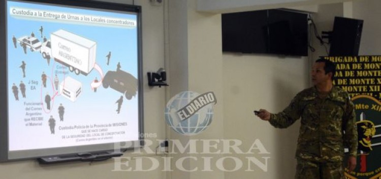 La provincia fue dividida en cinco sectores para cubrir de manera más efectiva toda la seguridad de las elecciones. La Policía de Misiones aporta 2.821 efectivos, mientras que el Ejercito Argentino desplegó a 1.952 hombres. También fue afectado personal de la Armada Argentina, la Prefectura Naval Argentina, Gendarmería Nacional, Policía Federal y el Servicio Penitenciario Provincial. Además, se dispuso la utilización de dos helicópteros y dos lanchas, todo ello coordinado desde el Comando de la Brigada de Monte XII del Ejército. Por otra parte, en la mañana de este martes comenzó el traslado de las urnas a los distintos establecimientos que serán utilizados en los comicios en los municipios del interior provincial. Las entregas están divididas en cinco troncales. El camión recorre las localidades dejando al personal del correo todo el material correspondiente a las elecciones. Se estima que el despliegue de urnas finalizará el sábado. <p lang="es" dir="ltr"><a href="https://twitter.com/hashtag/Elecciones2017?src=hash&ref_src=twsrc%5Etfw">#Elecciones2017</a> <a href="https://twitter.com/hashtag/Misiones?src=hash&ref_src=twsrc%5Etfw">#Misiones</a>Comenzó traslado de las urnas a los distintos establecimientos del interior que serán utilizados en los comicios <a href="https://t.co/QKxklf0Kwu">pic.twitter.com/QKxklf0Kwu</a></p>— Primera Edición (@primeraedicionw) <a href="https://twitter.com/primeraedicionw/status/920343200107323394?ref_src=twsrc%5Etfw">17 de octubre de 2017</a>