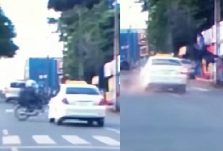 Según se puede ver en las imágenes, un trabajador del volante conducía su vehículo sobre la avenida Irrazábal de Encarnación cuando, al llegar a la intersección con la calle 25 de Mayo, una motocicleta le salió inesperadamente al paso y a toda velocidad, haciendo inevitable el tremendo impacto.Todo quedó grabado gracias a la cámara de un automóvil que venía detrás del taxi involucrado en el siniestro.El taxista viajaba sin pasajeros con dirección a la ruta 6, mientras que el motociclista iba rumbo a su lugar de trabajo como inspector municipal, en el Circuito Comercial, según manifestaron sus propios compañeros.Aunque se llevó la peor parte y tuvo que ser derivado al IPS para su atención médica, el conductor del rodado menor salvó milagrosamente la vida.Fuente: <a href="http://itapuanoticias.tv/" style="">Itapúa en Noticias (Paraguay)</a>
