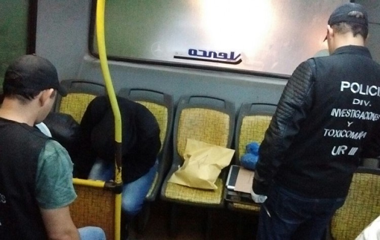 Un llamando al 911 advirtió a efectivos de la seccional Segunda de Eldorado que dos hombres cargaron "bultos" sospechos dentro de mochilas y subieron a un ómnibus en el barrio Pinares, en el Kilómetro 1 de la Capital del Trabajo. Esto derivó en un despliegue con personal de la comisaría jurisdiccional y del Comando Oeste que permitió localizar y aprehender a Germán R. (22) y Jorge G. (27), quienes en el interior de una mochila y dentro de sus prendas de vestir tenían bolsas plásticas con sustancia vegetal. La División Toxicomanía de la Unidad Regional III corroboró que se trataba de marihuana, cuyo pesaje total arrojó casi 600 gramos.Se procedió al secuestro del estupefaciente y los jóvenes, por disposición del Juzgado Federal, fueron notificados de la causa.