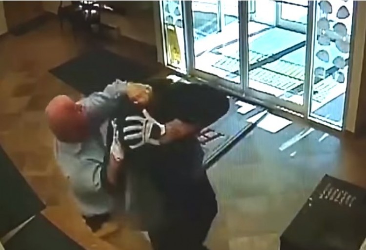 El héroe, identificado como Robert Sakosky llegó a la sucursal bancaria de Pennsylvania pocos minutos antes que el delincuente.Parecía lento en su andar incapaz de hacer lo que hizo después. Sin embargo, se abalanzó sobre el ladrón y le aplicó una llave de lucha libre con maestría y limpieza.Lo neutraliza y después se lanza sobre el ladrón, ya en el suelo, le quita la pistola, el pasamontaña obligándolo a huir. Fuente:T5