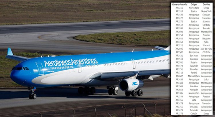 Aerolíneas Argentinas canceló 33 vuelos que afectarán a más de 4.000 pasajeros en el reinicio de sus operaciones tras el paro que llevaron adelante cinco gremios aeronáuticos y que obligó a la cancelación de 380 vuelos entre el lunes y el martes, afectando a más de 40.000 pasajeros.La cancelación de estos servicios "es necesaria para el restablecimiento normal de la programación, ya que resulta "imposible" retomar la actividad con normalidad porque hay aviones que quedaron en diferentes destinos y es necesario recuperarlos para comenzar a cumplir con el cronograma habitual", dijo una fuente de la compañía a Télam.La lista de los vuelos que serán cancelados fue publicada por la compañía en su página web y desde Aerolíneas se indicó a sus pasajeros que controlen ese listado para cambiar el pasaje o reclamar la restitución de su importe.La empresa comunicó que "debido al impacto del paro realizado en las últimas horas por la Asociación de Pilotos de Líneas Aéreas (APLA), la Unión de Aviadores de Líneas Aéreas (UALA), la Asociación del Personal Aeronáutico (APA), la Unión del Personal Superior de Empresas Aeronáuticas (UPSA) y la Asociación del Personal Técnico Aeronáutico (APTA), lamentamos informar que nuestros vuelos del 1° de noviembre se verán afectados en su programación habitual".Señalaron que "sumado a la cancelación de 50 vuelos del 30 de octubre y 330 vuelos del 31 de octubre, nos vemos forzados a cancelar 33 vuelos del 1° de noviembre, al tiempo que rogamos a los pasajeros con vuelos cancelados no concurrir al aeropuerto". Recomiendan por otra parte que los pasajeros se comuniquen con el canal por el cual se realizó la compra y así conocer las opciones disponibles en cada caso, según la política comercial que se estará aplicando.En ese sentido Aerolíneas aclaró que se permitirán cambios de fecha sin cargo, sin cobro de diferencia de tarifa ni cobro de fee (emisión), manteniendo la ruta y cabina original, para volar hasta el 30 de noviembre de 2017 y que esta medida aplica también para los tickets premio de Aerolíneas Plus.Agregó que otra opción es utilizar el ticket como crédito para cualquier ruta y fecha de vuelo, dentro del año de la fecha de emisión original abonando penalidad y diferencia de tarifa en los casos que corresponda.Y finalmente la posibilidad de la devolución del 100% del pasaje no utilizado gestionándolo a través de del mismo canal de emisión original. Entre los vuelos cancelados están los internacionales a Nueva York, Cancún y Montevideo, dos vuelos a Córdoba, dos a Tucumán, dos a Salta y vuelos a Rosario, Paraná, Neuquén, Mar del Plata y Posadas, entre otros destinos.Los cinco gremios aeronáuticos exigen un aumento salarial del 26 por ciento. La empresa, en tanto, ofreció hasta ahora "un 16 por ciento, con cláusula gatillo, lo que significa que se ajustará de acuerdo con la inflación, lo que representa de bolsillo un 20" por ciento, explicó ayer el presidente de Aerolíneas Argentinas, Mario Dell`Acqua, lo cual fue rechazado por los sindicatos.Fuente: Agencia de Noticias Télam