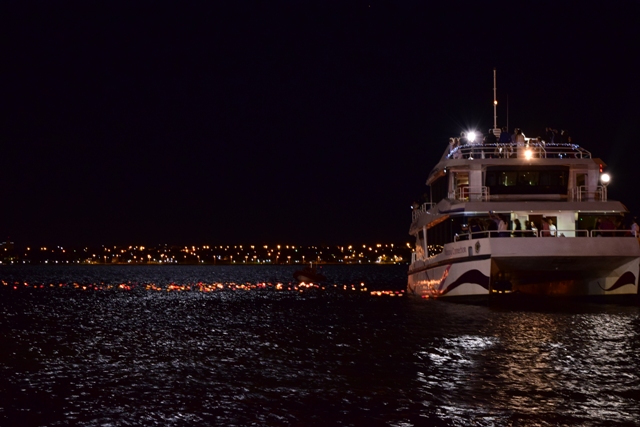 Inspirado en la corriente del arte contemporáneo que utiliza a la naturaleza como material (madera, tierra, piedras, arena, viento, rocas, fuego, agua etc.) para intervenir en sí misma, el artista invitó, por segundo año consecutivo, este doblando la apuesta, a disfrutar de un espectáculo tan único como efímero.Alrededor de las 21, el muelle y sus inmediaciones ya estaban abarrotados de un público curioso, por ver de qué se trataba esto que se anunció como "Land Art" o por disfrutar de una nueva oportunidad de esta propuesta, hasta que finalmente, después de las 21.30, las luces de la embarcación anunciaron el pronto inicio del "espectáculo".El frío del Paraná fue dispersando las luminarias, que por momentos parecieron estrellas reflejadas, a su antojo.Sólo fueron minutos, pero bastaron para llevar a los presentes de la euforia a la reflexión, de la ansiedad a la calma, de la angustia a la ilusión…