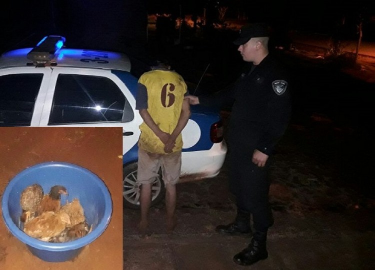 Cerca de la medianoche del domingo al lunes, Héctor Damián C. (27) fue arrestado en el Kilómetro 4 de Eldorado, luego de haber robado una gallina con pollitos, propiedad de su tía. La damnificada expresó que vio a su sobrino cuando rompió las tablas del gallinero y se llevó la gallina con sus seis pollitos.Las aves ya habían sido comercializadas a una vecina, quien no imagino que se trataba de animales malhabidos, por lo que los entregó inmediatamente a los uniformados del Comando Zona Oeste de la Unidad Regional III, quienes los restituyeron a la dueña. Entretanto, el detenido fue puesto a disposición de la Justicia.