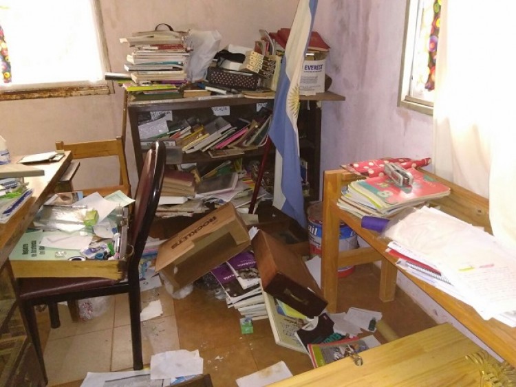Tras el robo ocurrido este fin de semana, el establecimiento sufrió daños y pérdidas de materiales sustanciales para la realización de tareas básicas con los alumnos de la comunidad y es por ello que el plantel docente apela a la solidaridad de los posadeños para poder recuperar los efectos que fueron sustraídos y que habían sido adquiridos con mucho sacrificio por parte de la comunidad escolar.El aula satélite del BOP 85 está ubicada en la calle 231 entre 75A y 73 del Barrio Néstor Kirchner de Posadas. Según consta en la denuncia policial realizada por la directora del establecimiento, Sara Miranda, en la comisaría 15ª de San Isidro, "siendo las 8:30 del sábado, la preceptora Noelia Ramírez me informa vía telefónica de que el aula satélite había sufrido un robo. Al llegar al lugar constató que personas habían ingresado por uno de los ventiluces y posteriormente violentaron la puerta de preceptoría, y al entrar encontramos todos los papeles tirados, las cajas organizadoras desparramadas, los cajones del escritorio abierto, libros tirados por el piso".Asimismo la directora detalló que los delincuentes se habrían llevado 2.300 pesos, que son los fondos recaudados de una rifa y del quiosco escolar; y desaparecieron las llaves de las aulas, de la sala de profesores y un manojo que contenía las copias de la puerta de acceso, del patio y de la puerta lateral.Entre otros objetos que también faltan en el aula satélite pudieron constatar una pinza, una pava eléctrica, un equipo de música, cable auxiliar, equipo de mate, decodificador TDA, una play station 2 con comando y 30 juegos (donados), dos CPU, dos monitores, 4 netbooks del programa Conectar Igualdad y varias pelotas de fútbol y voley. Sara Miranda describió que se encontró en el lugar con materiales quemados como resmas de hojas, libros de aula de años anteriores, libros de lengua, fichas médicas, una bandera de ceremonia de la provincia de Misiones y parcialmente una silla de madera.