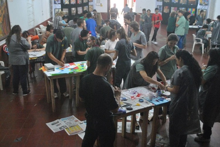 El último miércoles por la mañana, a través de doce estaciones con diferentes estilos, alumnos de la Escuela Especial de Formación Integral para jóvenes y adultos (EFFI) 1 de esta ciudad tuvieron su primer taller de arte donde pusieron en juego todos sus conocimientos artísticos. La actividad estuvo organizada por estudiantes de la carrera del profesorado en Educación Especial de la Facultad de Humanidades, residentes en dicha institución, y está en plan de volverse un proyecto institucional.Todo se inició porque la directora del EFFI 1 es también profesora de la cátedra de Práctica Profesional donde los chicos de Educación Especial deben hacer sus residencias. Es así como llegaron a la EFFI. “El taller surgió porque los pasantes tenían que hacer un proyecto institucional: así surgió la idea”, indicó a PRIMERA EDICIÓN la directora, Silvia Soria. Además, el taller les daría la posibilidad de utilizar una pinacoteca que tenía la institución desde 2015. Dicho año llegó hasta la escuela un material del Ministerio de Educación de la Nación denominado “Arte en la comunidad educativa” que consta de 24 cuadros de artistas argentinos más un cuadernillo guía para enseñar arte a los alumnos. “Hasta ahora, por distintos motivos, no pudimos usarlo en la escuela. Hoy es el puntapié inicial”, dijo la directora. Entonces, la jornada comenzó por una recorrida por la pinacoteca. “Los chicos pudieron recorrerla, ver las obras de los artistas argentinos y explorar qué técnicas se utilizaron y en qué años fueron producidos”, indicó a este Diario Santiago Andrujovich, uno de los residentes de la institución. Tras ello, comenzó el paseo por las diferentes estaciones para producir obras con diferentes técnicas. “Hubo expresión libre, puntillismo, collage, trabajos con espátulas, con relieves, con globos, con jeringas, con sorbetes, alrededor de doce estaciones. Ellos se distribuyeron según sus intereses y gustos y después produjeron sus obras”, remarcó Santiago.Participaron cerca de 60 alumnos y algunos padres, que incluso se animaron a pintar los cuadros, como los docentes. “Fue un espacio de relajación, de creación, fue muy lindo el encuentro”, destacó Soria. “Tratamos de organizar una jornada de arte con el objetivo de ampliar los universos culturales de los alumnos, de los estudiantes y también de sus familias, de toda la comunidad educativa”, señaló Santiago y explicó que “el trabajo consistió, desde hace unas semanas, en las planificaciones, armar el proyecto, conseguir los recursos y armar todo”. Otra de las estudiantes, Belén Giménez, indicó que “no fue solamente hoy (por el miércoles). Veníamos con trabajos previos el lunes y martes donde expusimos a los alumnos todo lo que va detrás de la obra: el autor y el contexto en el que se hizo”.En el taller también participaron dos alumnos del profesorado de Arte del Montoya. Luego, los chicos se ofrecieron a colaborar, entonces “les tomé la palabra y les dije que armen un proyecto y vamos a armar el taller institucional de arte, que sea cada dos meses o una vez al mes”, señaló Soria. La institución alquila la Peña Itapúa para clases de teatro por lo que también pueden utilizar el lugar para el taller.