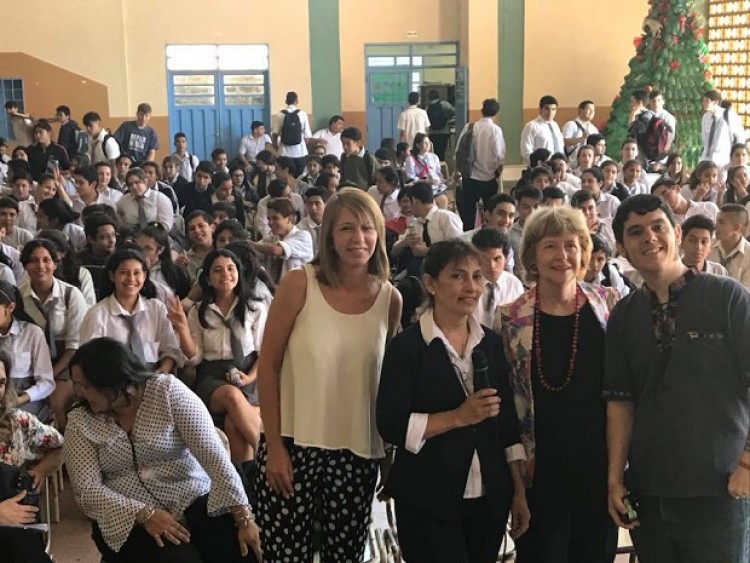 La diputada Claudia Gauto y ell historiador Pablo Camogli continúan visitando establecimientos escolares con el fin de dar cumplimiento a lo establecido en la Ley VI N°178 que instituye el 17 de noviembre el “Día del Provinciano Misionero”. La Ley VI N°178 establece que “durante la semana del 17 de noviembre de deben realizar actividades educativas conmemorativas y culturales que rescaten y promuevan la historia de la sanción de la Constitución provincial de 1954, es en ese marco que la diputada provincial Claudia Gauto, junto al historiador y periodista Pablo Camogli, visitaron este miércoles 15 el Bachillerato Orientado Provincial (BOP) 8. “Uno de los preceptos de la Primer Constitución de Misiones, sancionada el 17 de noviembre de 1954, propugnaba la conformación de una sociedad políticamente soberana con una fuerte impronta social y humanista”, destacó Gauto al presentar a Camogli quien narró a los estudiantes los hechos que llevaron a la redacción de ese primer marco legal en la provincia y presentó el capítulo del ciclo “Ser Misionero” que enmarca los acontecimientos previos y posteriores a tal suceso. “Estos encuentros nos permiten trasmitir a los estudiantes la importancia de revalorizar nuestra historia”, destacó la legisladora y subrayó que “en dialogo con los estudiantes les recordamos la institucionalización de nuestra provincia y porqué en el año 2014 el Ingeniero Carlos Rovira redactó la Ley VI N°178 que instituye el 17 de noviembre el “Día del Provinciano Misionero”.