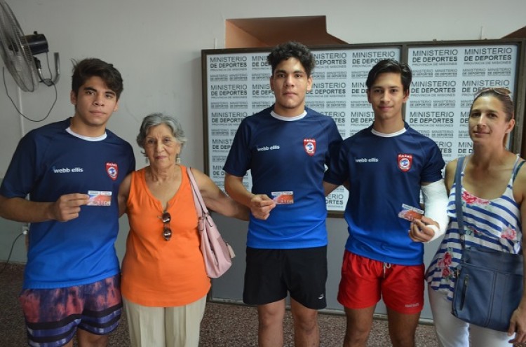 Más jóvenes de la provincia gozan de los beneficios que otorga la Cobertura Integral de Salud para Deportistas, el programa que llevan adelante los ministerios de Deportes, Salud Pública y el Instituto de Previsión Social (IPS) de Misiones.En este caso, el ministerio de Deportes realizó la entrega de las credenciales a la Unión de Rugby de Misiones (URuMi), destinadas a nueve jugadores de los clubes afiliados que no cuentan con cobertura. Los jugadores Gonzalo Candia, Santiago y Gonzalo Brítez, de la categoría Menores de 16 del CAPRI, recibieron las credenciales que le permitirá acceder a los beneficios de la cobertura. Estuvieron acompañados por Facundo Tejedor y Miguel Ojeda, presidente y secretario de la URuMi, respectivamente, quienes recibieron las correspondientes a Marcos Miranda, Guillermo Cueva, Axel Mareco, Jorge Cortes, Julio Cardoso y Pedro Leiva.Además, dispondrán de médico deportólogo, nutricionista, kinesiología, análisis clínicos en los Laboratorios del IPS y diagnóstico por imágenes.El trabajo articulado del Ministerio de Deportes, junto a las Federaciones y Asociaciones que rigen los destinos de las disciplinas en la provincia, permite que los deportistas que no disponen de cobertura de salud sean los beneficiarios, designados por las propias instituciones deportivas.“En la Unión estamos trabajando de manera ordenada y venimos siendo beneficiados con los programas y acciones que se generan desde el ministerio. Para nosotros eso es muy bueno porque los podemos derramar a los chicos que en definitiva son los que practican el deporte y nos representan con pasión”, expresó entusiasmado Tejedor. Deporbono Al mismo tiempo, la URuMi recibió los números para el segundo sorteo del bono deportivo Deporbono. Al respecto, Tejedor consideró que “es una posibilidad de ingreso de recursos muy importante, que le queda efectivamente y seguro a cada club, es recurso concreto que ingresa” y precisó que van a “distribuir la totalidad de los bonos divididos por la cantidad de clubes, de manera que todos tengan las mismas posibilidades. Será una motivación para que los chicos puedan movilizarse y venderlos”. Por último, destacó que el Deporbono es “una idea muy creativa y refleja que están permanentemente generando ideas para que el deporte siga creciendo y para que las federaciones sigan teniendo esa contención que se necesita. Básicamente, el problema son los recursos económicos y estas cosas vienen a contrarrestar esta realidad”.