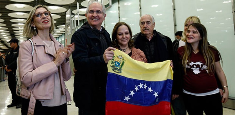 Ledezma llegó al aeropuerto madrileño de Barajas en un vuelo comercial desde Bogotá. Culminó así un periplo en el que primero burló el arresto domiciliario al que estaba sometido desde 2015, por una supuesta conspiración contra Maduro, y luego logró entrar en Colombia por la ciudad fronteriza de Cúcuta.El destacado opositor, de 62 años y con buen ánimo, se fundió en un emocionado abrazo con su mujer Mitzy Capriles y sus hijas Antonietta y Mitzy, residentes en España, y que no habían sido avisadas de su decisión de escapar.También lo recibieron el expresidente colombiano Andrés Pastrana y un puñado de simpatizantes con banderas venezolanas."Voy a dedicarme a recorrer el mundo, voy a contribuir en el exilio a ser una extensión de la esperanza de los venezolanos de salir de este régimen, de esta dictadura", anunció Ledezma a la prensa.El alcalde metropolitano de Caracas se reunió este mismo sábado por la tarde con el presidente del gobierno español, Mariano Rajoy. No se informó de momento sobre el contenido de la entrevista, en la sede de la presidencia, el palacio de La Moncloa en Madrid.Rajoy ha manifestado en reiteradas ocasiones su simpatía por la oposición venezolana y además desconoce a la Asamblea Constituyente de ese país, instalada por iniciativa de Maduro y denunciada como ilegítima por sus detractores."Incoherencias" que han hecho "mucho daño"En momentos en que la oposición se dispone a mantener un diálogo los próximos 1 y 2 de diciembre en Santo Domingo con el gobierno de Maduro, Ledezma dio un toque de atención a sus compañeros, criticando las "incoherencias" en que a su juicio han incurrido algunos y pidiendo "autocrítica".Sin referirse a ellos por su nombre, Ledezma arremetió en particular contra la decisión de cuatro gobernadores opositores electos en los comicios regionales del 15 de octubre de juramentarse ante la Asamblea Constituyente, una forma de reconocer una instancia denostada por la oposición."Ahorita lo único bueno que ha tenido el gobierno ha sido los errores cometidos por la dirigencia de la oposición, a la que invito desde España a hacer un ejercicio de autocrítica para rectificar", declaró a la prensa Ledezma.La jura causó una profunda división: el excandidato presidencial Henrique Capriles anunció que abandonaba la opositora Mesa de Unidad Democrática, y condicionó su retorno al retiro de la misma de Henry Ramos Allup, veterano líder de Acción Democrática (AD), al que pertenecen los cuatro gobernadores.Según Ledezma, la oposición debe ahora "encontrar la brújula que se nos ha perdido", después de unas "incoherencias" que "nos han hecho mucho daño", y máxime cuando "Venezuela está a punto del colapso definitivo"."Mientras el mundo entero le dice a Venezuela que nos respalda porque desconoce la Asamblea Nacional Constituyente, ilegítima y consecuencia de uno de los más grotescos fraudes que se conozcan en el mundo, hay dirigentes que se llaman de la oposición que reconocen esa Asamblea Nacional Constituyente", comentó.El alcalde precisó que trabajará dentro del movimiento Soy Venezuela, impulsado por la ex diputada y destacada figura opositora María Corina Machado.También criticó las condiciones del diálogo venidero con el gobierno, afirmando que en realidad es una "treta" con la que Maduro quiere "burlarse de los venezolanos".Minutos antes de su llegada, Pastrana dijo por su lado que a partir de ahora Ledezma será "la voz de los que no tienen voz en Venezuela", junto con María Corina Machado, la sociedad civil e intelectuales.Por su lado, Maduro se refirió con ironía a la fuga de Ledezma, pidiendo el viernes a Madrid que no lo "devuelva"."Hoy se nos escapó Antonio Ledezma, el vampiro volando libre por el mundo, se fue protegido a España a vivir la gran vida, a ir a tomar vino a la Gran Vía", dijo en un acto en Caracas. "Que no nos lo devuelvan".Ledezma, uno de los opositores encarcelados más emblemáticos de su país junto con Leopoldo López, también preso en su domicilio, aseguró que pudo fugarse con ayuda de militares venezolanos."Cuando viviendo como una película de James Bond hice este recorrido de más de 24 horas, pasando 29 puntos de control, alcabalas, atravesando trochas, asumiendo todos los riesgos, no hacía sino pensar en el valor de la libertad. Y hoy, cuando llego a España, me siento libre", agregó Ledezma ante la prensa en el aeropuerto de Madrid.Fuente: Agencia de Noticias AFP/NA