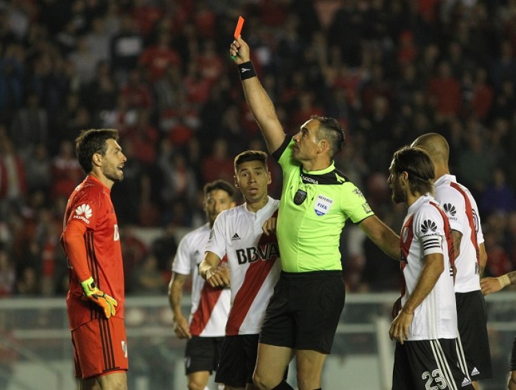 Independiente, que preservó algunos titulares para la Copa Sudamericana, se impuso el sábado por la noche por 1 a 0 sobre River, en un partido disputado en Avellaneda y correspondiente a la novena fecha de la Superliga.El mediocampista Nicolás Domingo, a los 36 minutos del segundo tiempo, marcó el gol de la victoria del "Rojo", tras una gran corrida de Sánchez Miño.El elenco de Núñez sufrió la expulsión de su arquero Germán Lux, a los 18 minutos del primer tiempo, en una jugada en la que salió a cortar fuera de su área para anticipar a Lucas Albertengo, pero calculó mal, tomó la pelota con ambas manos y el árbitro Silvio Trucco le mostró correctamente la tarjeta roja.Fuente: NA