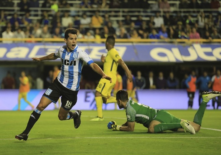 Con una sólida actuación, Racing de Avellaneda derrotó este domingo en La Bombonera al líder Boca Juniors, por 2 a 1, con goles de Lautaro Martínez y Augusto Solari, mientras que Darío Benedetto, de penal, anotó para el local. La "Academia" mereció el triunfo es este partido por la novena fecha de la Superliga de fútbol, donde el arbitraje de Darío Herrera recibió severas críticas de parte de los ganadores. A pesar de este resultado adverso, el primero en 9 fechas, Boca se mantiene como líder del torneo con 6 puntos de ventaja sobre sus escoltas San Lorenzo y Unión de Santa Fe.