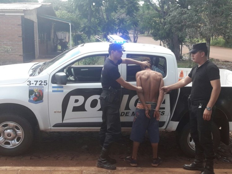 Minutos después de las 13 horas de este miércoles, se tomó conocimiento que en la calle Ester y Avenida Fundador un hombre habría robado a punta de cuchillo. Una vez en el lugar una mujer de 35 años manifestó que momentos antes un hombre la amenazó de muerte, se llevó un paquete de cigarrillos, una botella de caña de su kiosco y se dio a la fuga.También el mismo sujeto habría ingresado a una vivienda ubicada en la zona y amenazó de muerte a una familia si no les entregaba dinero.Se realizó un rápido rastrillaje y en un campo efectivos del Comando Oeste UR-III detuvieron a Juan A. y en su poder secuestraron un cuchillo y la mercadería robada en el local comercial.El detenido fue alojado en la comisaría jurisdiccional.