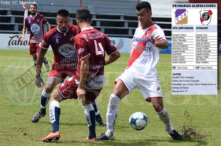 Con los regresos a la titularidad del defensor Oscar Brizuela y el delantero Alan Almirón, Guaraní Antonio Franco realizará esta noche una riesgosa visita a Salta para enfrentar a Juventud Antoniana, en un juego correspondiente a la decimoquinta fecha de la zona 4 del torneo Federal A.El partido se disputará en el coqueto estadio Padre Martiarena, ubicado en las afueras de la capital salteña. El árbitro del encuentro será el tucumano Ariel Montero.Guaraní, que viene de alcanzar su primer triunfo jugando en Villa Sarita y el segundo del torneo (el primero fue de visitante en Corrientes ante Mandiyú) buscará esta noche desplegar su planteo un tanto mezquino, que en los últimos tres partidos le dieron un gran rédito, pues hace tres partidos que no pierde y suma y encima no le han marcado goles en su arco.Los regresos de Brizuela y Almirón serán por el lesionado Elián Kopp y Hernán Encina. Esta movida del entrenador misionero obligará a algunos cambios posicionales por lo que Pablo Bárzola, que actuó de central ante San Jorge, volverá a marcar la punta derecha; mientras que el juvenil Fabio Domínguez pasará a marcar la punta izquierda en lugar de Elián Kopp, quien está lesionado.Tal como viene sucediendo en los últimos encuentros, la “Franja” volverá a plantarse en mitad de cancha, ya que la obligación estará del lado del “Santo” salteño, que necesita de los tres puntos en juego, pues juega de local y está muy cerca del cuarto que es Crucero.A Salta, con el resto de sus compañeros, viajó el zaguero paraguayo Arnaldo Pereira, quien está prácticamente recuperado de la lesión que padecía en la rodilla.En el banco de suplentes del equipo que dirige Miguel Ángel Salinas estarán Ezequiel Navarro Montoya, Hernán y Enzo Galarza, Hernán Encina, Claudio Fileppi y Guido Da Silva. Juego clave ante el “algodonero” El entrenador franjeado y su ayudante de campo, Carlos Marczuk, van recuperando jugadores y eso es importante, ya que el próximo martes en Villa Sarita, el elenco misionero enfrentará a un rival directo en la lucha por las últimas posiciones. Es un partido de los denominados “de seis puntos” ante Deportivo Mandiyú, pues ambos están últimos en las posiciones y aquel que gane este juego sacará una leve ventaja pensando en la próxima fase del torneo, en donde los que están en esta situación deberán sumar todo lo que puedan para no caer en la zona del descenso.