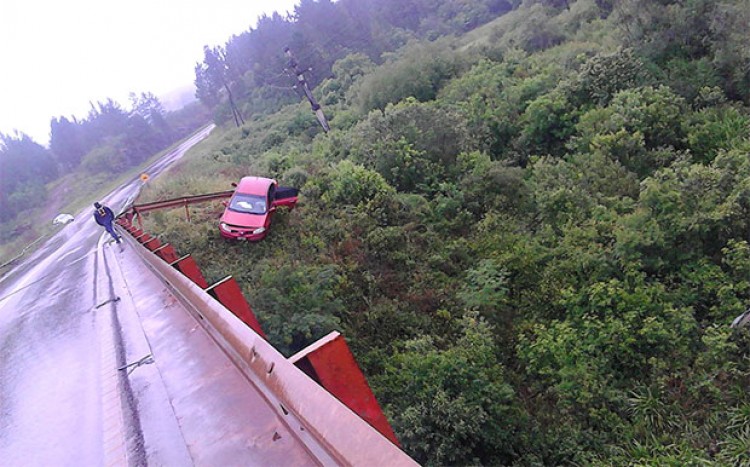 Fue a las 13.45 de este sábado sobre la ruta nacional 14, en el siempre peligroso puente sobre el arroyo Yazá. Por el lugar, un Renault Megane conducido por un hombre de 32 años perdió el control y a poco estuvo de precipitarse, pero la barra metálica enganchó al rodado y detuvo la caída.Los ocupantes, de entre 3 y 33 años, sufrieron lesiones menores. Efectivos de la comisaría local y de Seguridad Vial de la Unidad Regional II de Oberá trabajaron en la escena.