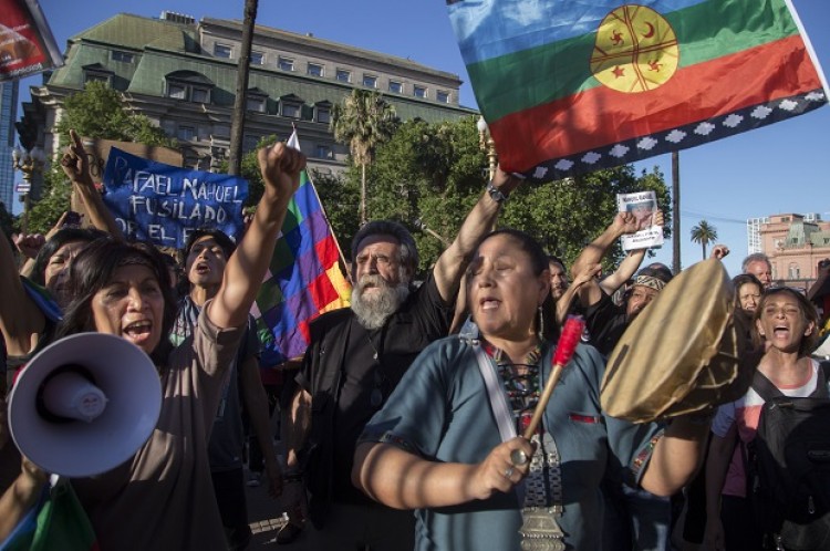 El Ministerio de Seguridad salió hoy al cruce de las críticas por el rol de las fuerzas federales en <a href="http://www.primeraedicion.com.ar/nota/261001/un-muerto-en-enfrentamiento-entre-mapuches-y-prefecturianos.html">la muerte del joven mapuche Rafael Nahuel en Río Negro</a> y relató que el hecho se dio en el marco de un "enfrentamiento armado" y una "emboscada" contra cuatro prefectos.En un comunicado, la cartera señaló que durante las tareas de rastrillaje llevadas a cabo por cuatro prefectos para dar con el paradero de las "personas prófugas" luego del desalojo realizado el jueves pasado en la comunidad Lof Lafken Winkul Mapu del Lago Mascardi, un grupo de entre 15 y 20 personas "encapuchadas" lanzaron una "emboscada" contra la patrulla."El grupo de personas comenzó a avanzar utilizando movimientos tácticos militares y adoptando una formación de emboscada envolvente sobre los cuatro efectivos, lo que demostraba la preparación militarizada del grupo, que sumada a las máscaras de gas, daban la impresión de un grupo preparado para un evento violento", describió el texto oficial.Mencionaron que al verse "superados en número" y al notar que los mapuches, algunos de los cuales portaban "armas blancas", no cesaban en su agresión contra la patrulla, solicitaron "apoyo y autorización para hacer uso de sus armas de fuego para salir del rodeo".Según la narración de la cartera que conduce Patricia Bullrich, los prefectos emprendieron el descenso "cubriéndose con disparos de fuego intimidatorios", que fueron los que finalmente provocaron la muerte de Nahuel y otras dos personas heridas."A las 18:00 horas aproximadamente, desde la ladera de la montaña y en la zona próxima al puesto de la Prefectura Naval, descendieron dos personas con una tercera que estaba herida.En ese momento se procedió a la detención de los mismos, identificados como Fausto Jones Huala y Alejandro González, constatándose luego que la persona herida había fallecido", se informó.Por último, la cartera de Seguridad lamentó el trágico episodio pero aclaró que "no se trató de un grupo de protesta o de reivindicación sino de una metodología de violencia armada, inadmisible con la democracia y el Estado de Derecho" y reafirmó la "confianza en la investigación judicial para demostrar que se actuó bajo todas las medidas operativas y protocolos que se utilizan en un enfrentamiento armado".Entretanto, organismos de Derechos Humanos integrantes del Encuentro Memoria Verdad y Justicia (EMVJ) y agrupaciones de izquierda marcharon este domingo a Plaza de Mayo para protestar por el "asesinato" de Nahuel, y responsabilizaron por el hecho al Ministerio de Seguridad que conduce Patricia Bullrich.Fuente: NA