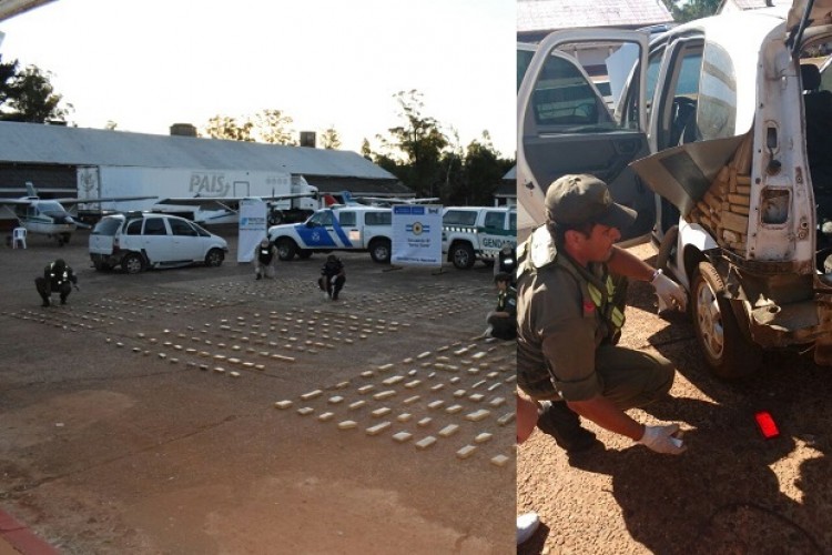 Gendarmería Nacional decomisó 103,325 kilogramos de marihuana que iban ocultos en distintos sectores de un automóvil que pudo ser detectado por efectivos del Escuadrón 57 "Santo Tomé", cuando realizaban controles sobre el kilómetro 669 de la ruta nacional 14, en inmediaciones del paraje correntino Cuay Grande. Allí interceptaron una Chevrolet Meriva procedente de Foz de Iguazu (Brasil????) y que tenía como destino final la localidad entrerriana de Concordia, al mando de un hombre de nacionalidad brasileña. Al efectuar el control correspondiente, el Personal de la fuerza detectó, a través de un orificio del zócalo, la presencia de paquetes envueltos en color cinta ocre, similares a los utilizados para trasladar estupefaciente, por lo que se trasladó el rodado para una inspección minuciosa. Ante testigos, los uniformados constataron que en el interior del torpedo, en los guardabarros traseros, los zócalos laterales, parantes de las puertas, en el interior del baúl y detrás de las ópticas traseras se acondicionaban 630 paquetes que fueron sometidos a prueba de narcotest, arrojando positivo para marihuana. Un total de 103 kilos 325 gramos "cannabis sativa" (marihuana) fueron incautados. Por disposición del Juzgado Federal de Paso de los Libres, se procedió a la detención del involucrado y al secuestro del estupefaciente y del vehículo.