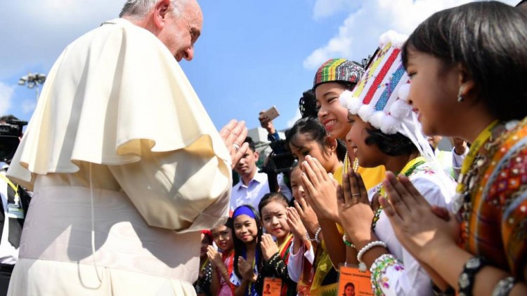 La iglesia birmana defiende a Suu Kyi de quienes la acusan de falta de empatía con los rohinyás, argumentando que ella debe negociar con las Fuerzas Armadas y que sigue siendo una figura clave para democratizar el país. La víspera, la ciudad inglesa de Oxford retiró a Suu Kyi el premio de la libertad debido a su "inacción" frente a la opresión de los rohinyás. Será la segunda entrevista este año del papa con Suu Kyi, a quien recibió en el Vaticano en mayo pasado. En esa ocasión la Santa Sede y Birmania anunciaron la instauración de relaciones diplomáticas plenas, por lo cual un nuncio apostólico -Embajador- acaba de instalarse en el país. El Papa llegó a Naypydaw, la capital, este martes por la tarde. Fue recibido por decenas de niños de diferentes comunidades de este país sacudido por conflictos étnicos. El Papa será recibido por el presidente, Htin Kyaw, un allegado de Suu Kyi, y luego por esta última, quien, pese a ser oficialmente ministra de Relaciones Exteriores es, de facto, jefa del Gobierno. El jefe de la iglesia católica pronunciará luego un discurso ante las autoridades civiles, representantes de la sociedad civil y del cuerpo democrático en el inmenso centro de congresos en el que será recibido. La iglesia católica no quiere ponerse en contra a una población mayoritariamente budista, marcada por un nacionalismo antimusulmán, e indignada por las críticas de la comunidad internacional por la crisis de los rohinyás."Rohinyá", palabra tabúEste martes, todas y cada una de las palabras de Francisco serán examinadas con lupa, justo después del discurso de Aung San Suu Kyi. Se ignora si el pontífice pronunciará la palabra "rohinyá", un tabú para los birmanos. Temiendo una reacción de los budistas extremistas, el arzobispo de Rangún, Charles Bo, le recomendó que lo evitara y optara por la frase: "musulmanes del estado de Rakáin". Esta terminología oficial, neutra, es la que desearía imponer Suu Kyi para evitar la guerra semántica entre la apelación "bangladesíes" (utilizada por la mayoría budista en Birmania) y "rohinyás" (empleada por esos musulmanes para designarse). "Aunque no pueda decir la palabra, todos sabemos que está allí por los rohinyás… Debemos apoyar a los pobres, a los que sufren", declaró a la AFP una religiosa católica de Tailandia que viajó a Rangún para asistir a la multitudinaria misa que oficiará el papa el miércoles. Desde la plaza de San Pedro de Roma, el papa ha manifestado su emoción en varias ocasiones al hablar de la situación de los rohinyás, "torturados y asesinados a causa de sus tradiciones y de su fe" en Birmania. Parece poco probable que vaya a expresarse tan libremente en territorio birmano. El lunes por la tarde interrumpió su descanso para participar en un "encuentro de cortesía" privado, de un cuarto de hora, con el jefe del ejército, al que la ONU acusa de haber llevado a cabo una "limpieza étnica" contra los rohinyás. El poderoso general Min Aung Hlaing, que en principio debía reunirse con el pontífice el jueves, le aseguró al papa que su país no ejercía "ninguna discriminación religiosa" y que el ejército actuaba "por la paz y la estabilidad del país". El papa Francisco, infatigable defensor del diálogo interreligioso, inició la jornada de este martes con una reunión "privada" en Rangún con dirigentes religiosos budistas, hinduistas, cristianos, musulmanes y judíos. Hablaron de la unidad a pesar de las diferencias, comentó Sammy Samuels, un representante de la comunidad judía de Brimania. El Papa pronunció "un discurso muy, muy bonito", dijo. Fuente: Agencia de Noticias AFP/NA