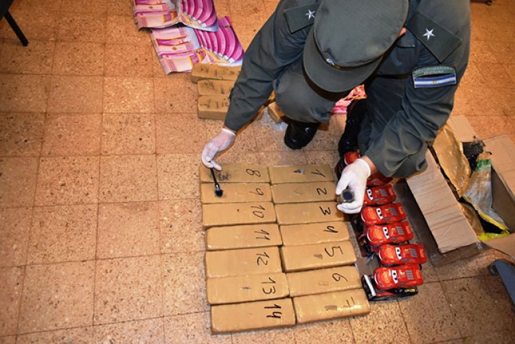Una banda que tenía a esta ciudad como centro de operaciones pero contaba con presencia en diferentes puntos del país fue desbaratada ayer, después de al menos ocho meses de investigación por parte del Juzgado Federal de Eldorado, a cargo del magistrado Miguel Ángel Guerrero, y efectivos del Escuadrón 13 Iguazú de Gendarmería Nacional.Los allanamiento se iniciaron el lunes y finalizaron este martes.?Arrojaron como saldo la detención de seis personas en Puerto Iguazú, tres en La Rioja y un décimo sospechoso en La Plata, provincia de Buenos Aires. Según pudo saber PRIMERA EDICIÓN, las autoridades investigan otros tantos destinos del estupefaciente que enviaba la banda a través de encomiendas, siempre “camuflados” entre juguetes para niños.Fuentes del caso confirmaron a este Diario que la pesquisa se inició en marzo último, después de una serie de procedimientos realizados en la Triple Frontera. El trabajo de las autoridades federales permitió establecer de manera fehaciente una estructura conformada por individuos que tenían como centro a Puerto Iguazú, a 300 kilómetros de Posadas.Según el circuito reconstruido por los investigadores, la marihuana ingresaba por sectores clandestinos hacia Misiones, donde era acondicionada. Desde allí, los integrantes de la organización la enviaban entre juguetes hacia distintos destinatarios.Producto de esa pesquisa fue que el juez Guerrero ordenó el lunes el inicio de las acciones. Se realizaron cinco allanamientos en?Puerto Iguazú donde, además del secuestro de 40 kilogramos de marihuana, también fueron incautadas dosis -en menor cantidad- de clorhidrato de cocaína. Se presume que, además de enviar la droga, la banda también tenía bocas de expendio en la ciudad del Alto Paraná.En tanto, en La Rioja, tres sospechosos fueron detenidos, aparentemente después de que uno de ellos se presentara en una agencia postal en busca de un paquete con estupefacientes. La última de las detenciones se produjo en la capital bonaerense.Los seis detenidos misioneros permanecen alojados en el Escuadrón 13 de Gendarmería, mientras que los cuatro restantes eran trasladados ayer bajo un estricto operativo de seguridad hacia Misiones.Junto con las aprehensiones y el secuestro del estupefaciente, también se incautaron cuatro automóviles que eran utilizados por la organización narco. En tanto, el martes por la noche el trabajo de los gendarmes continuaba en busca de otros implicados en la investigación, quienes permanecían prófugos: de los datos que obran en el expediente surge que, con el objetivo de despistar a los sabuesos, la banda utilizaba a diferentes personas para despachar las encomiendas.