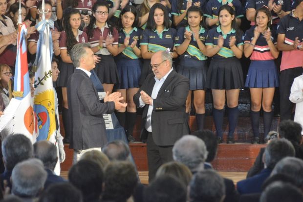 En una jornada histórica que testimonió la puesta en valor y recuperación del edificio de la Escuela Regional Normal José Manuel Estrada, que en junio pasado cumplió 130 años de existencia, Mauricio Macri y el gobernador correntino Ricardo Colombi fueron los oradores de un acto en el que se descubrió una placa recordatoria.En el marco de su novena visita a la provincia, el Presidente arribó en helicóptero a la emblemática institución, que se vistió de gala para la ocasión y cuyo Salón de Actos se vio colmado de alumnos que recibieron con calidez y aplausos a la comitiva oficial integrada también por el gobernador electo Gustavo Valdés, el ministro de Educación de la Nación, Alejandro Finocchiaro, y su par provincial, Susana Benítez.Además, participaron del acto el titular del Plan Belgrano, Carlos Vignolo, ministros, secretarios y subsecretarios del gabinete provincial, interventores de entes autárquicos, el presidente de la Cámara de Diputados, Pedro Cassani, legisladores provinciales, el intendente electo de Corrientes, Eduardo Tassano, docentes e invitados especiales."Una escuela es el lugar donde los chicos empiezan a soñar en qué es lo que quieren hacer el día de mañana y sueñan de la mano de nuestros maravillosos docentes, que son protagonistas fundamentales en esta etapa tan importante para los chicos", puntualizó el Presidente.Macri advirtió que “el mundo aceleró en cambio tecnológico, avanzó el mundo digital y es un desafío enorme para los docentes. Para nosotros que somos inmigrantes a la tecnología, todo eso nos cuesta; pero nos damos cuenta de que si no adquirimos esas herramientas, nos vamos a quedar afuera por muchos años de todas las cosas que podemos hacer. Y lo más importante: si nuestros docentes no adquieren estas herramientas y no se las pueden transmitir a los chicos, éstos chicos no van a tener acceso al trabajo del siglo XXI".“Hablamos de las herramientas de la digitalización, programación, robótica, impresoras 3D, lo que nos permite elegir dónde vivir, donde trabajar. Que aquellos correntinos que aman su ciudad no tengan que abandonar la por falta de trabajo, porque van a tener las herramientas a cabo. Y lo más importante que esta revolución que hemos aprendido y acordado junto a todos los gobernadores allá en Purmamarca (Jujuy) tiene como objetivo la igualdad de oportunidades más allá del lugar donde vivan tengan acceso a todas esas herramientas”, recordó.Aludió luego a la relevancia que tiene “profundizar el diálogo” y defendió las evaluaciones educativas: "¿Cómo vamos a mejorar si no sabemos en qué estamos fallando? Necesitamos tener información y saber la verdad. Que realmente los chicos que terminan el colegio estén preparados para ingresar a la Universidad o adquirir un buen trabajo. Eso hoy sabemos que no sucede: sólo uno de cada cuatro chicos que comienza hoy en la Argentina educación pública está en condiciones de acceder a un buen trabajo. Tenemos muchísimo por mejorar y esa mejora la queremos hacer en conjunto: Gobierno, gremios, docentes, padres, poniéndonos de acuerdo en cuáles son los valores que queremos transmitirles a nuestros chicos”.Según Macri, Argentina entró en una etapa de "reformismo permanente" que "genera respeto, admiración, apoyo en el mundo entero. Lo hemos visto con esta tragedia que estamos viviendo con la desaparición del submarino. Han venido de diversas partes del mundo a decirnos ‘queremos ayudar a los argentinos’, darle nuestro apoyo, la mejor tecnología, para ver si juntos encontramos el submarino. Esto demuestra que el mundo nos está dando una oportunidad y ahora depende de nosotros demostrarles que aprendimos de verdad de nuestros errores y que ahora queremos trabajar juntos, respetándonos unos a otros, sin más avivadas que lo único que han generado es mucha pobreza en todo el país”."Gastada" futboleraMacri también aprovechó para deslizar su sentido del humor hacia Ricardo Colombi, quien terminó "revolcado" por el piso cuando intentó atajar un penal durante una actividad con chicos deportistas: "Por suerte, como Gobernador anduvo mucho mejor que como arquero, si no Corrientes se hubiera venido como lo hizo él".Fotos: Prensa Gobernación de Corrientes