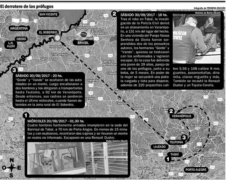 También tenían pasamontañas, guantes y otros tantos elementos utilizados en por lo menos 45 golpes contra bancos y cajeros de Brasil, hechos por los que permanecían prófugos. Justamente ese trasfondo es al que este Diario pudo acceder gracias a sus fuentes en el país vecino, quienes confirmaron el derrotero de los hermanos hasta su caída en suelo argentino.