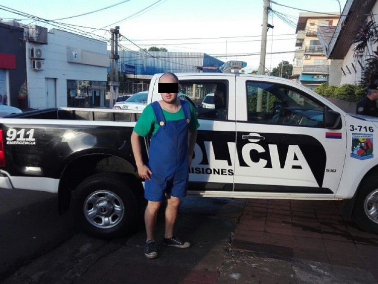 Personal policial detuvo a un sujeto disfrazado de “Luigi”, hermano del célebre personaje de videojuegos “Mario Bros”, tras ser acusado de agredir físicamente a una joven en plena vía pública de Posadas.