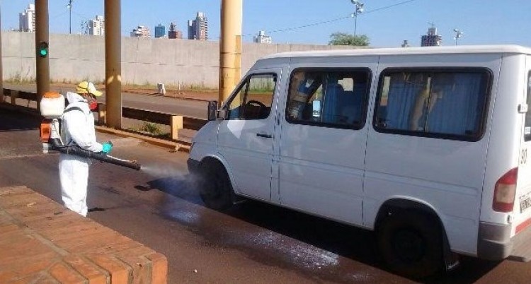 Desde el viernes agentes de saneamiento ambiental realizan tareas de rociado espacial preventivo a los vehículos que ingresan del vecino país y a la provincia, a través del Puente Internacional San Roque González de Santa Cruz de Posadas- Encarnación.