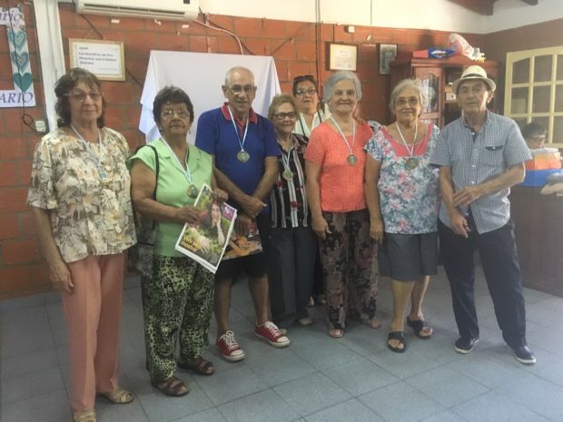 Sonrientes y orgullosos, nuestros adultos mayores recibieron las medallas en una breve ceremonia.