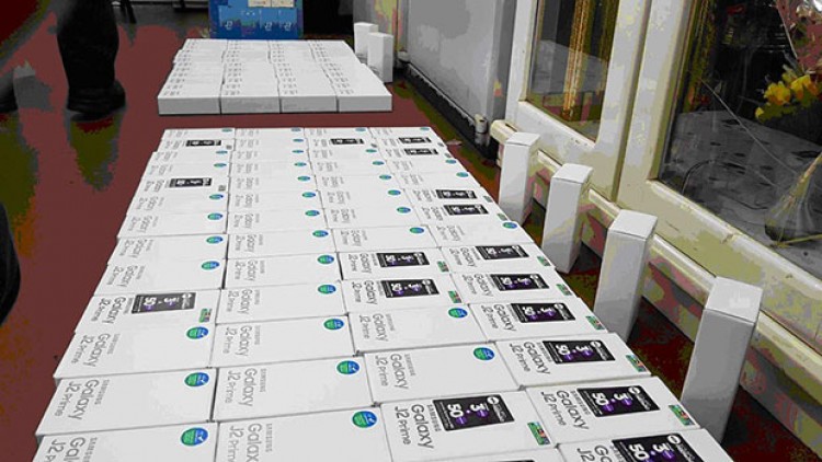 Tras realizar la revisión correspondiente, se encontraron 180 teléfonos celulares Samsung de diferentes modelos, ocultos en el compartimiento de la rueda de auxilio y en los pisos y el asiento trasero del auto.