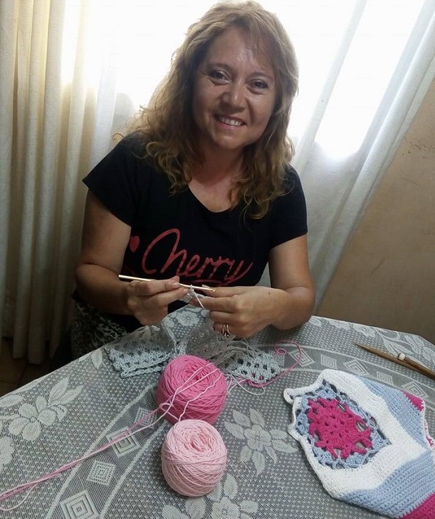 Pasó el tiempo, estudió medicina y se profesionalizó como instrumentista. Vivía en Buenos Aires y 25 años después regresó a Posadas con su esposo y sus hijos. Como tuvo un problemita de salud, debía quedarse en casa y reposar, entonces el tejido se convirtió en su mejor terapia.