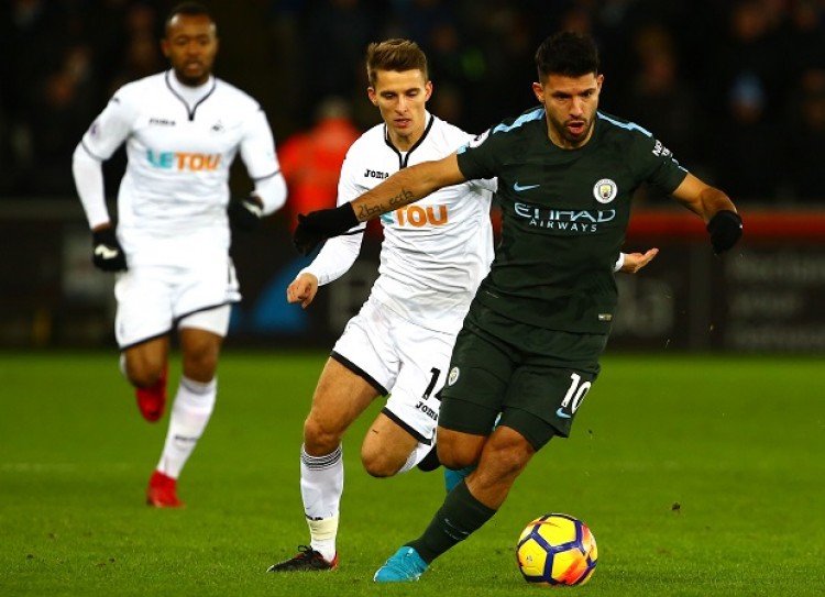 El líder Manchester City, con un gol del argentino Sergio Agüero, aplastó este miércoles al colista Swansea City, por 4-0 como visitante, en un encuentro correspondiente a la 17ª fecha de la Liga de Inglaterra.