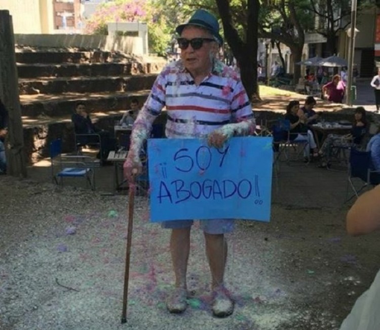 Aprobó su última materia en la Universidad de Córdoba y lo agasajaron como corresponde. Eduardo Etchepare de 82 años se recibió de abogado. Comenzó la carrera de Derecho a los 77 años y hoy lo agasajaron con pinturas, huevos y mejunjes como si fuera un joven más.