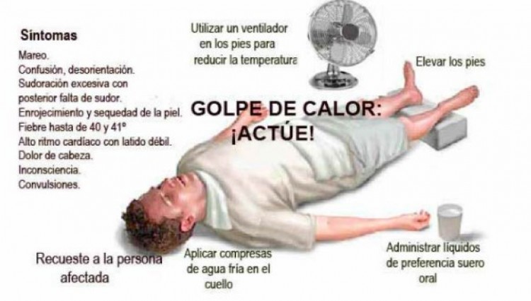 ¿A qué se denomina golpe de calor? Es el desequilibrio hidro-electrolítico desencadenado por las elevadas temperaturas del ambiente que producen deshidratación, lipotimia o alteración de la presión, sequedad de las mucosas y la piel, alteración de la conciencia, trastornos neurológicos, entre otros síntomas.