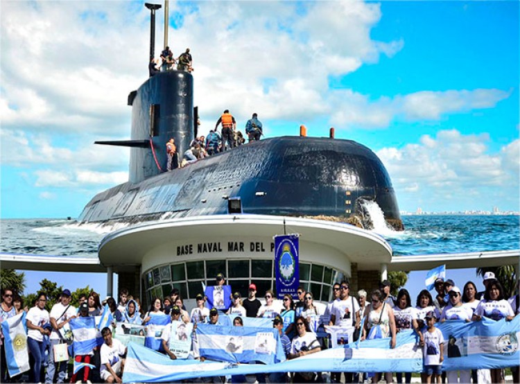 Al cumplirse un mes de la última comunicación con la nave, las familias de los tripulantes se concentraron hoy en la Base Naval Mar del Plata para reclamar que continúe la búsqueda, que se investigue qué fue lo que ocurrió y que se llegue a los responsables de lo sucedido.