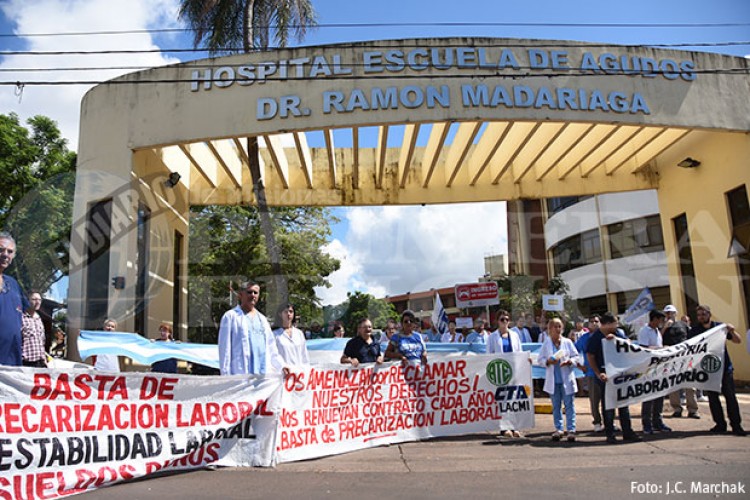 Esta mañana, a partir de las 9, los trabajadores comenzaron a concentrarse en el hospital Madariaga donde se sumaran sus pares del servicio de laboratorio de ese nosocomio que llevan adelante desde hace ya varios meses reclamen el pase a planta y equiparación salarial.
