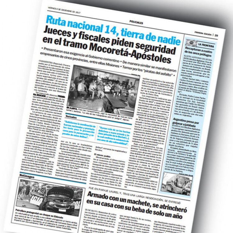 Los golpes e intentos de asalto bajo la modalidad piratas del asfalto no se detienen sobre la ruta nacional 14 en el norte correntino. Uno de los de mayor gravedad se produjo entre las localidades de Santo Tomé y General Alvear y tuvo como protagonista a una banda de al menos ocho sujetos armados con fusiles FAL, escopetas y armas cortas, quienes balearon a un camión que se dirigía a Posadas y correspondía a una firma de logística de provincia de Buenos Aires.